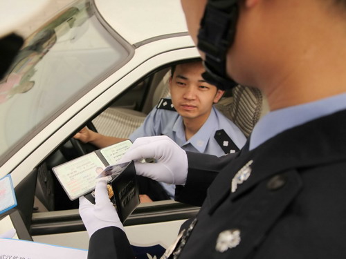 督察人員對警車駕駛員證件進(jìn)行認(rèn)真核查