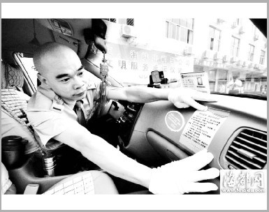 “承諾按表收費(fèi)、主動(dòng)給票、不繞道……”昨日,福州海峽出租車公司、福州公交集團(tuán)出租汽車公司國(guó)有的1000輛的士,在斗門舉行文明服務(wù)承諾儀式,承諾文明行車,并在車?yán)镔N上“文明承諾書(shū)”。出租車司機(jī)若違反承諾,乘客可舉報(bào),經(jīng)核實(shí),公司將給予50元獎(jiǎng)勵(lì)。