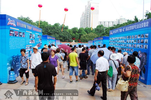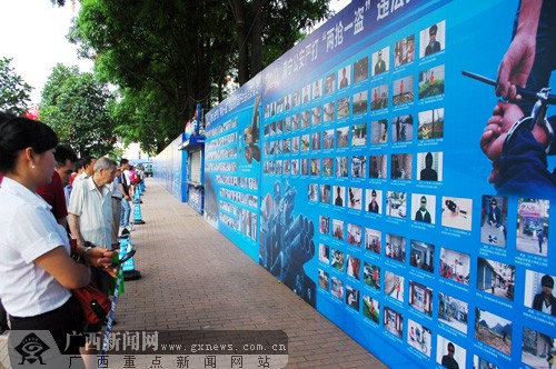 市民在南寧市朝陽廣場觀看南寧公安打擊違法犯罪成果展示。廣西新聞網(wǎng)記者 潘曉明 攝