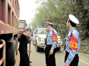交警開展泥頭車專項整治行動。