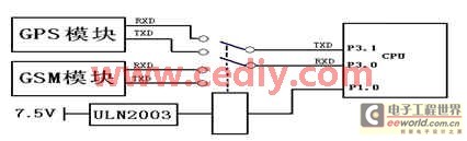 由于我們使用的單片機只有一個串口,這就要我們對串口進行切換,我們選用的是繼電器,但由于單片機的I/O口驅動電流很小,繼電器不能工作,這樣我們采用ULN2003作為驅動,它是反向驅動開路輸出達林頓,如圖2,我們采用單片機管電流的方式驅動繼電器。