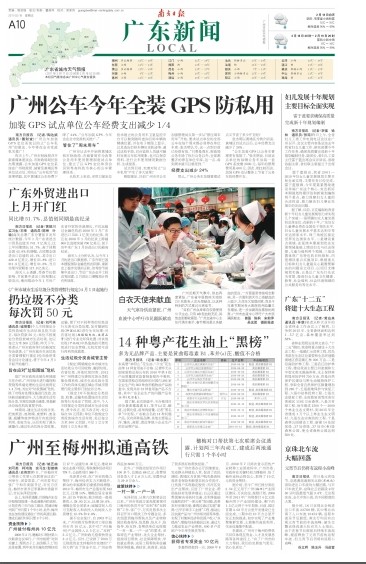 南方日報訊 (記者/陶達嬪通訊員/穗財宣)廣州公車加裝GPS定位系統以防止“公車私用”的做法,今年將在全市黨政機關推廣!