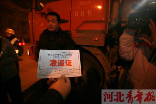 “現在石家莊有2000輛渣土車,其中至少有300輛屬非法運輸。現在開始,我們就要進行長久執法了。發現‘黑車’,一律頂格處罰。”帶隊夜查的石市城管委主任盧建新說。