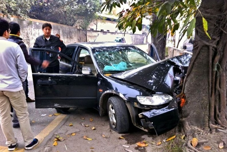 嫌犯駕車逃跑,慌不擇路撞上大樹。