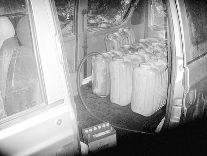 圖為司機用于偷油的面包車和工具。江俊濤攝