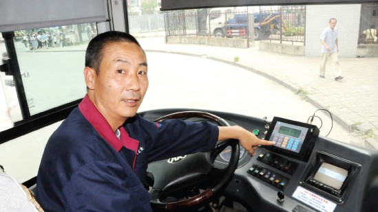 昨天上午,記者在合肥公交集團一樓智能公交調度大廳看到,路上正在運營的每一輛3路公交車都顯示在電腦上,是停靠在站還是在路上運行,都清晰可見,后臺調度工作人員可以隨時“掌控”車輛。“如果駕駛員超速行駛,我們也可以監控到,如果兩輛車跟得太近,可以進行語音提醒。”合肥公交集團副總工程師汪永強告訴記者,選擇3路車是因為這條線路的車輛原先都已經安裝了GPS定位系統,這次在車上又安裝了智能車載主機,通過調度主機,后臺可以向正在行駛的駕駛員發出相關“指示”。
